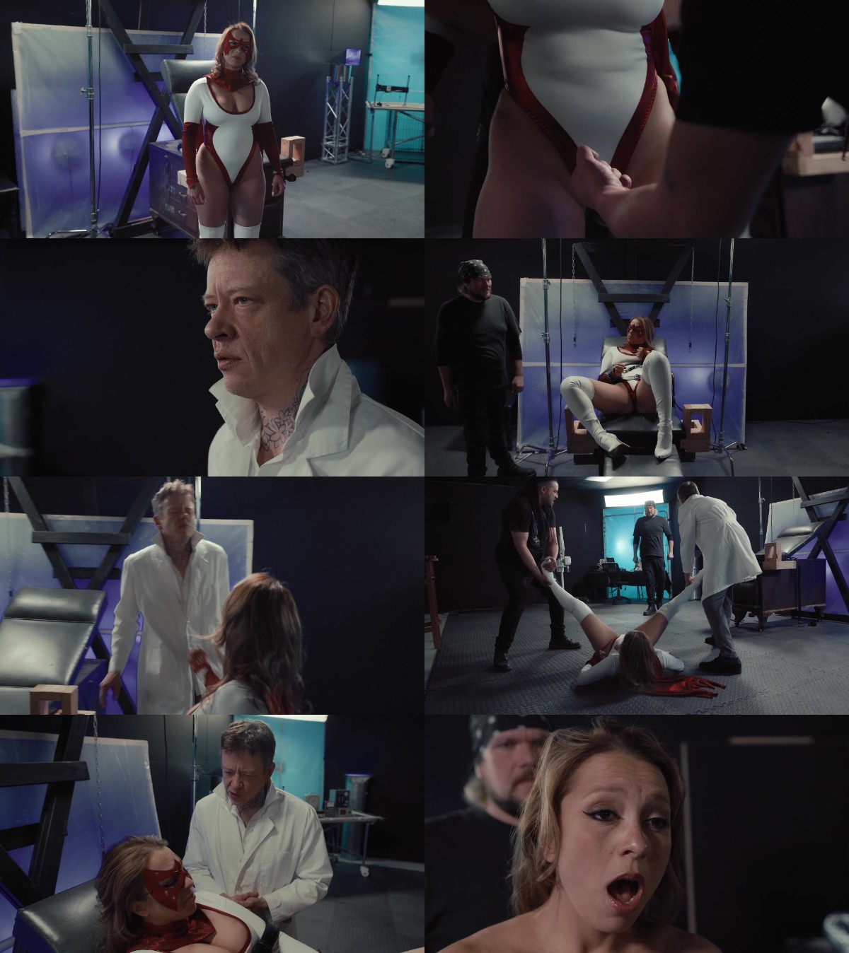 Contains: 2 on 1 female/male/male combat, face punches, stomach punches, kicks, low blows, enhancement injection, demasking, powerful taser, full nudity, forced 2 on 1 fucking in multiple positions including BJ