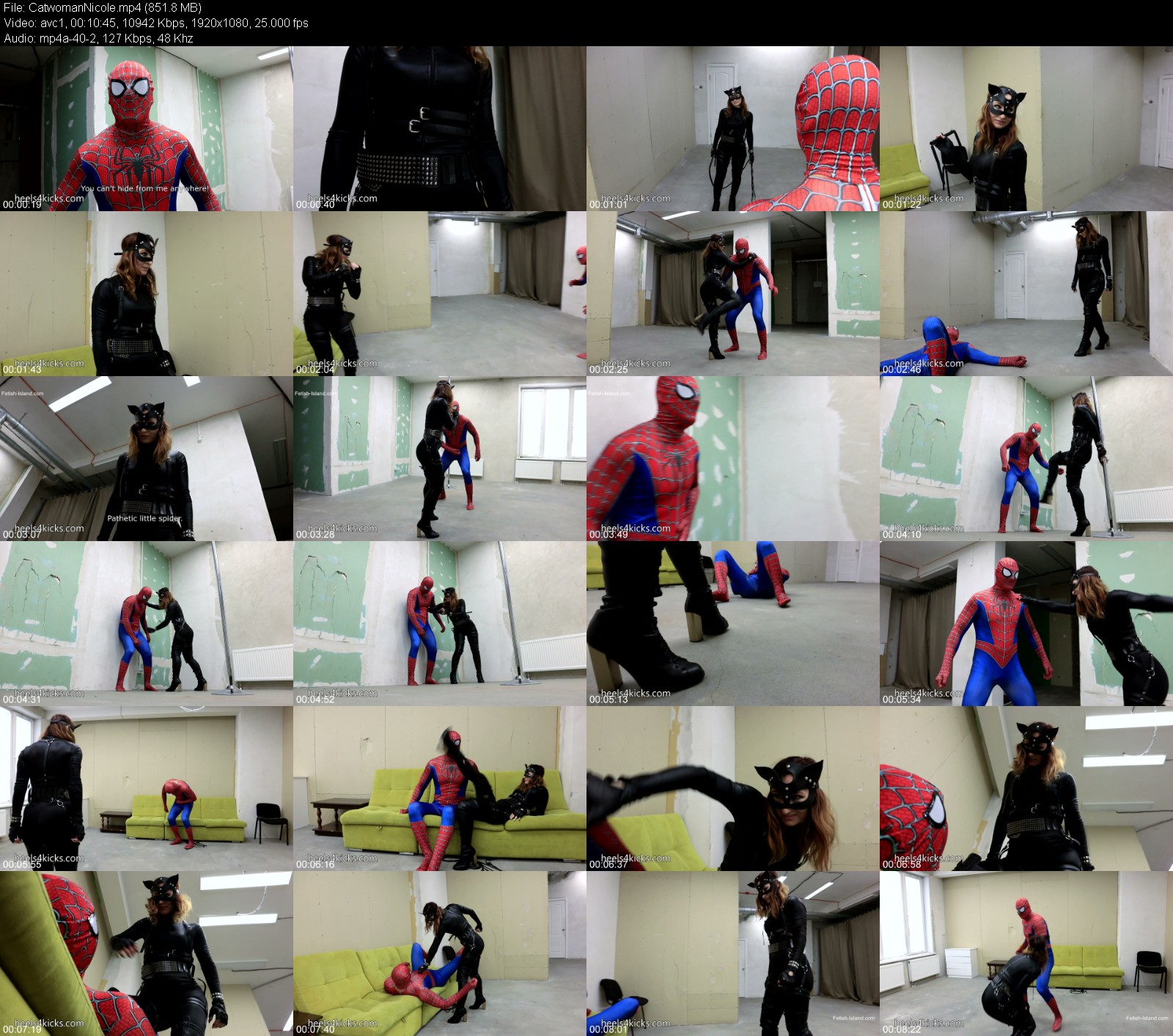 SpiderMan came to Catwoman’s lair in order to stop her robberies and make her to leave the city. He was sure he could handle her easily, because she was just a woman, even though she was a Cat. However, SpiderMan clearly overestimated his fighting skills. Catwoman Nicole quickly put him on his shoulder blades, showing him his true place – at her feet. After all, women are much stronger and smarter than men, and they can easily outwit their inflated Egos.Language: Russian with English subtitlesSpiderMan came to Catwoman’s lair in order to stop her robberies and make her to leave the city. He was sure he could handle her easily, because she was just a woman, even though she was a Cat. However, SpiderMan clearly overestimated his fighting skills. Catwoman Nicole quickly put him on his shoulder blades, showing him his true place – at her feet. After all, women are much stronger and smarter than men, and they can easily outwit their inflated Egos.